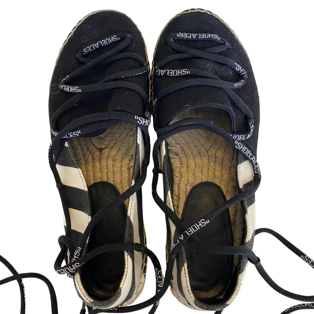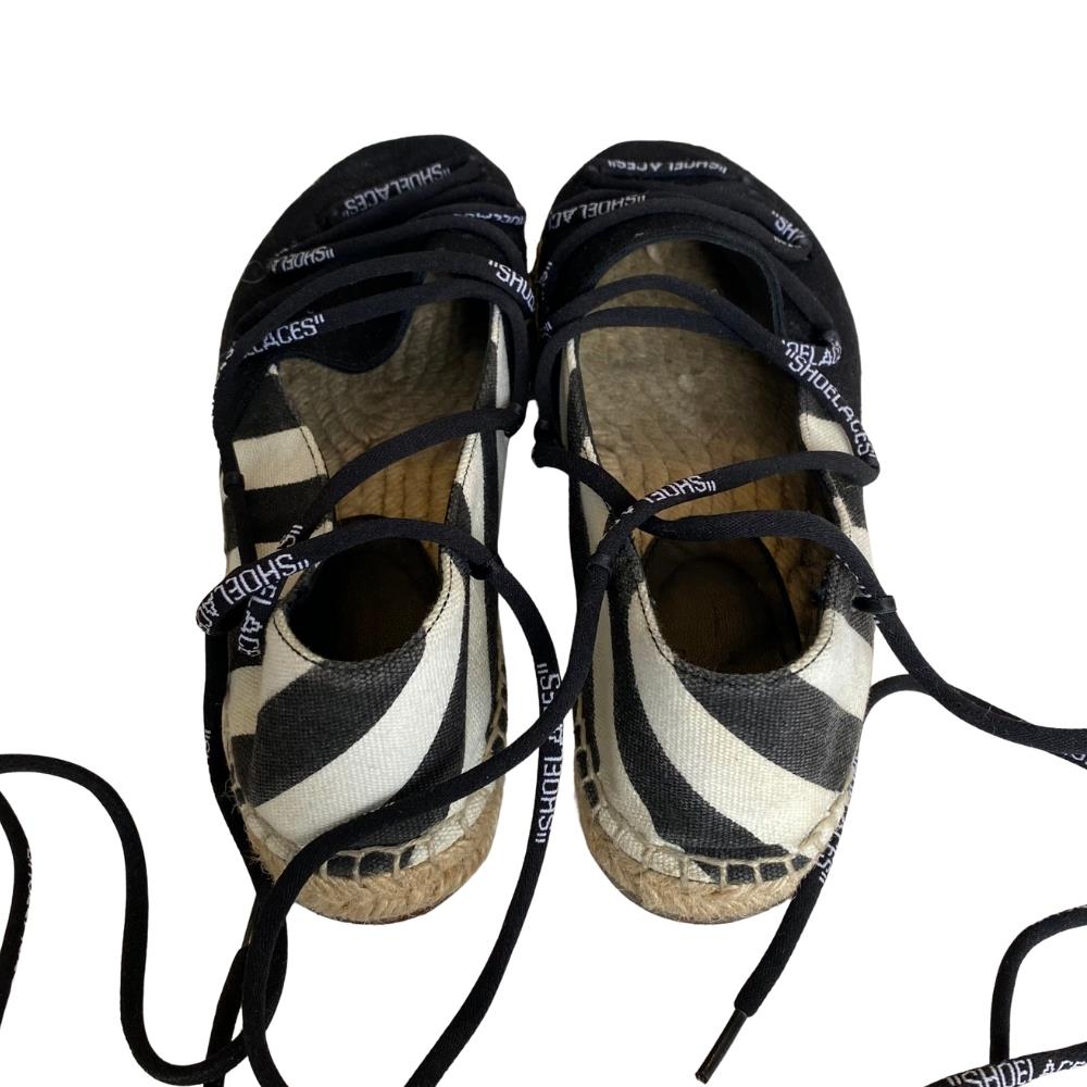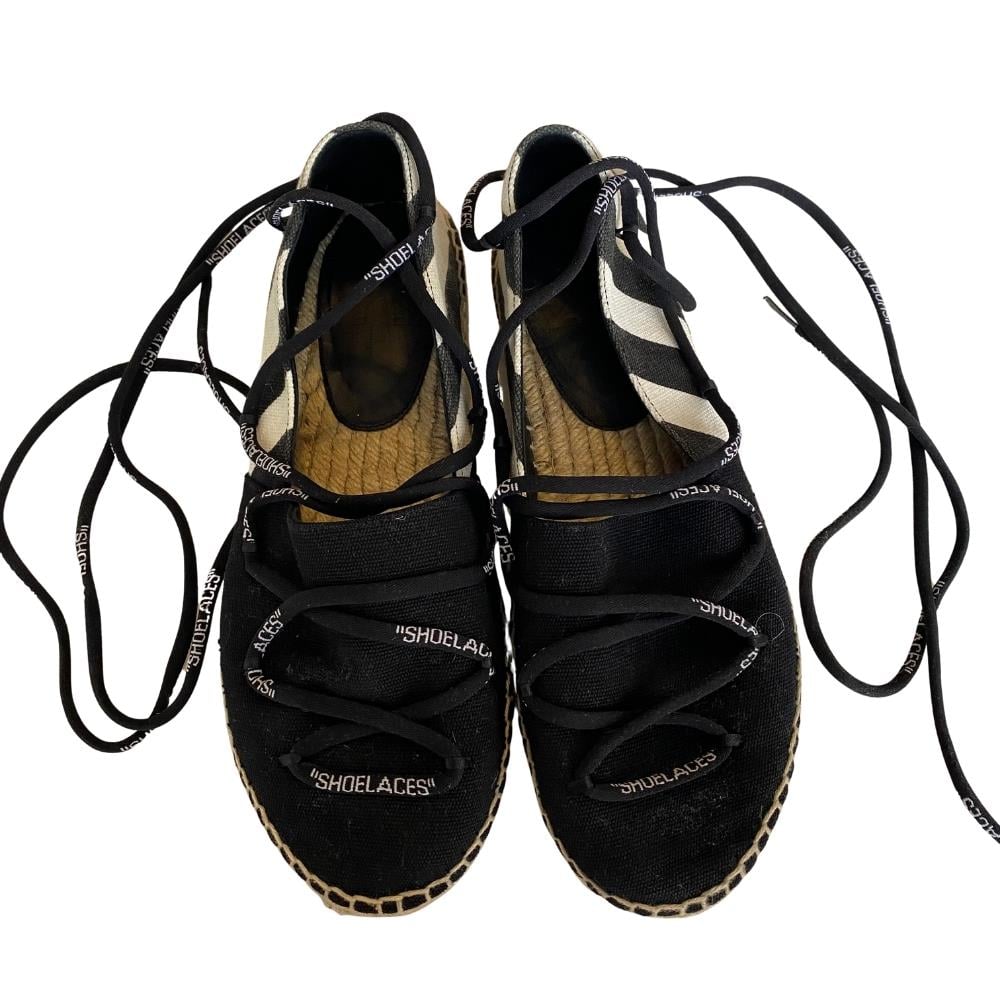 Off White Siyah/Beyaz Bağlamalı Hasır Sandalet - 37