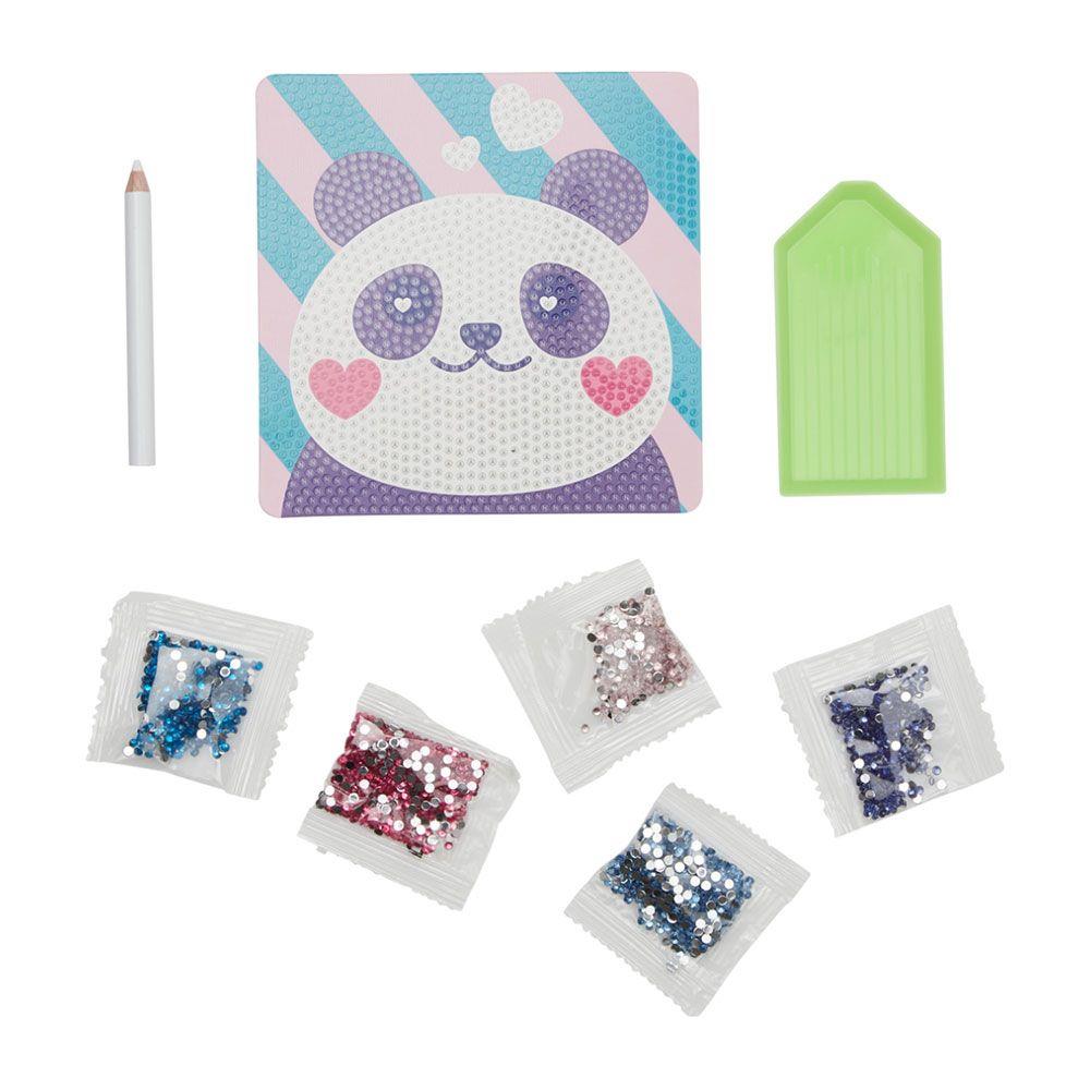 Bu kendin yap (DIY) sanat seti (boncuk goblen) ile göz kamaştıran sanat eserleri ortaya çıkarın! Tek yapmanız gereken; parıltılı ve renkli boncukları panda resminin üzerindeki renklere göre setle beraber gelen özel kalemle yapıştırmak. Boncukların bir yüzü düz diğer yüzü kabarık. Kabarık olan kısım kalemin ucuna; düz olan kısım ise resmin üzerine değer değmez yapışıyor. Resmi tamamladığınızda ortaya parıl parıl parlayan bir tasarım ortaya çıkıyor!