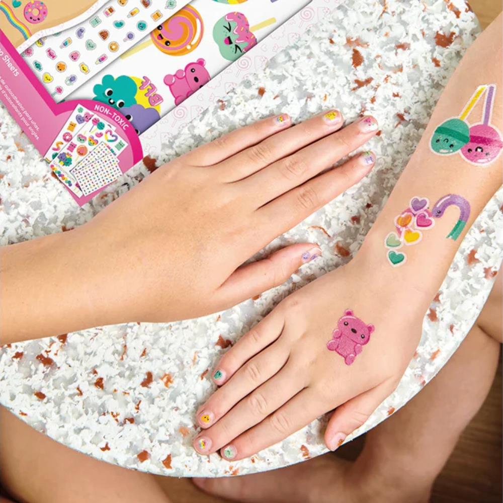 225’ten fazla geçici dövme ve tırnak stickerı içerir