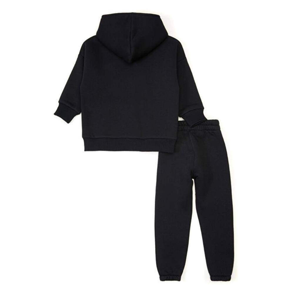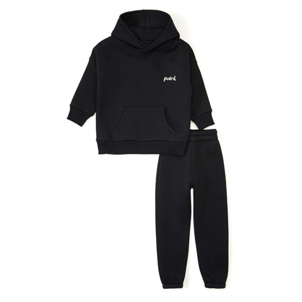 Çocuklar için mükemmel kombinasyonu sunan bu eşofman takımı, 3 iplik şardonlu kumaştan üretilmiş ve normal kesime sahiptir. 2-3 yaşından 12-13 yaşa kadar geniş bir yaş aralığını kapsar. Ön sol kısmında reflektör baskı Pueril logosu bulunmaktadır. Kapüşonlu üst kısım, uzun kollara ve ribana manşetlere sahiptir. Kanguru cep detayı ve ribana alt kısmı modern bir görünüm sunar. Eşofman altı, bel ve paça lastikleriyle rahat bir kullanım sağlar. Pamuk içerikli kumaşı sayesinde çocukların konforu ön plandadır.