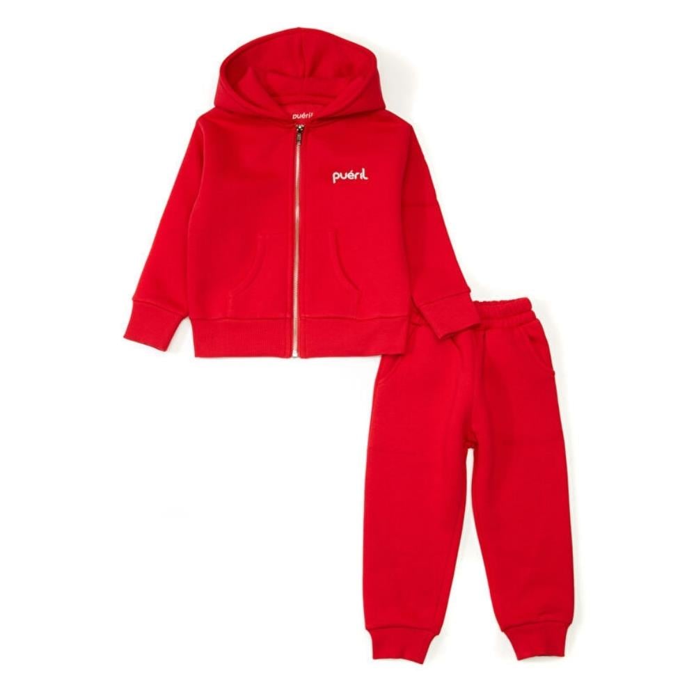 Pueril Kids Şardonlu Fermuarlı Çocuk Eşofman Takımı Kırmızı