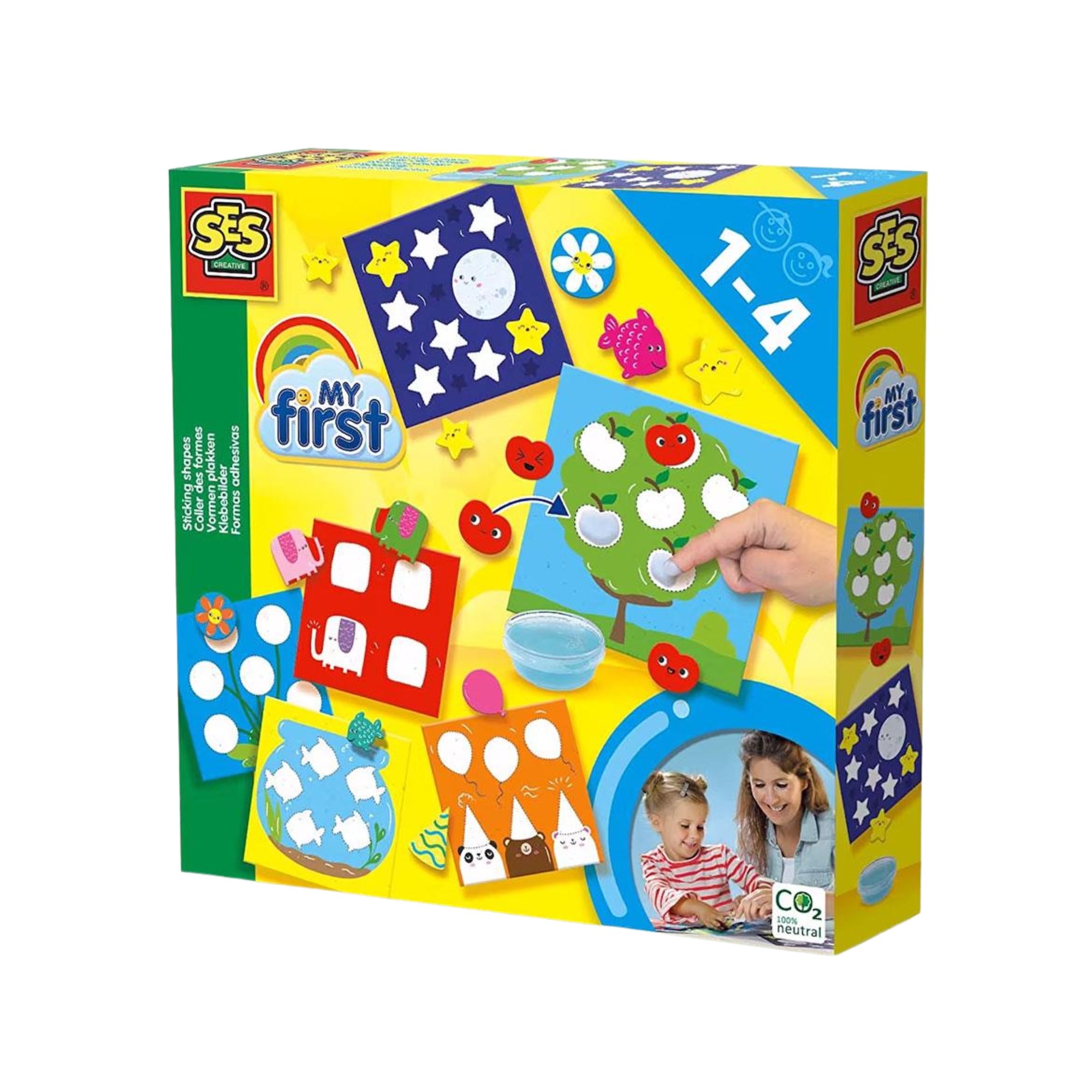 Elmalar nereye aittir? Ağaçlara! Peki ya yıldızlar? Gökyüzüne! Parmağınızı kullanarak kartların açık alanlarına biraz yapıştırıcı sürün ve doğru şekli üstüne yapıştırın. Bu şekilde, şekil tanımayı eğlenceli bir şekilde öğrenebilir ve ince motor becerilerini de geliştirebilirsiniz. Yapıştırıcı kumaştan kolayca yıkanarak çıkarılabilir.