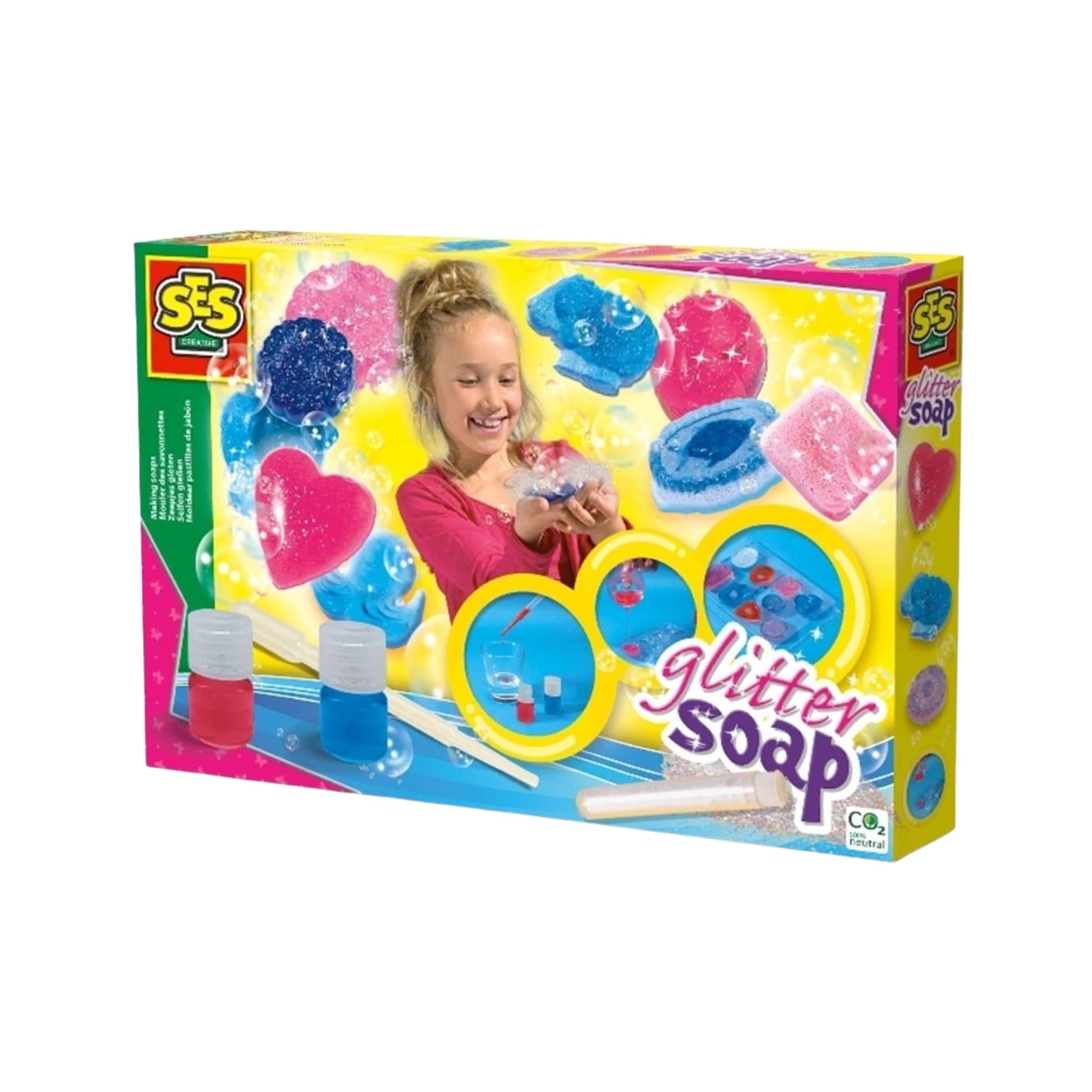 • Bu set bir çocuğun farklı renk ve şekillerde kendi parıldyan sabunlarını yapması için gerekli herşeyi içermektedir!