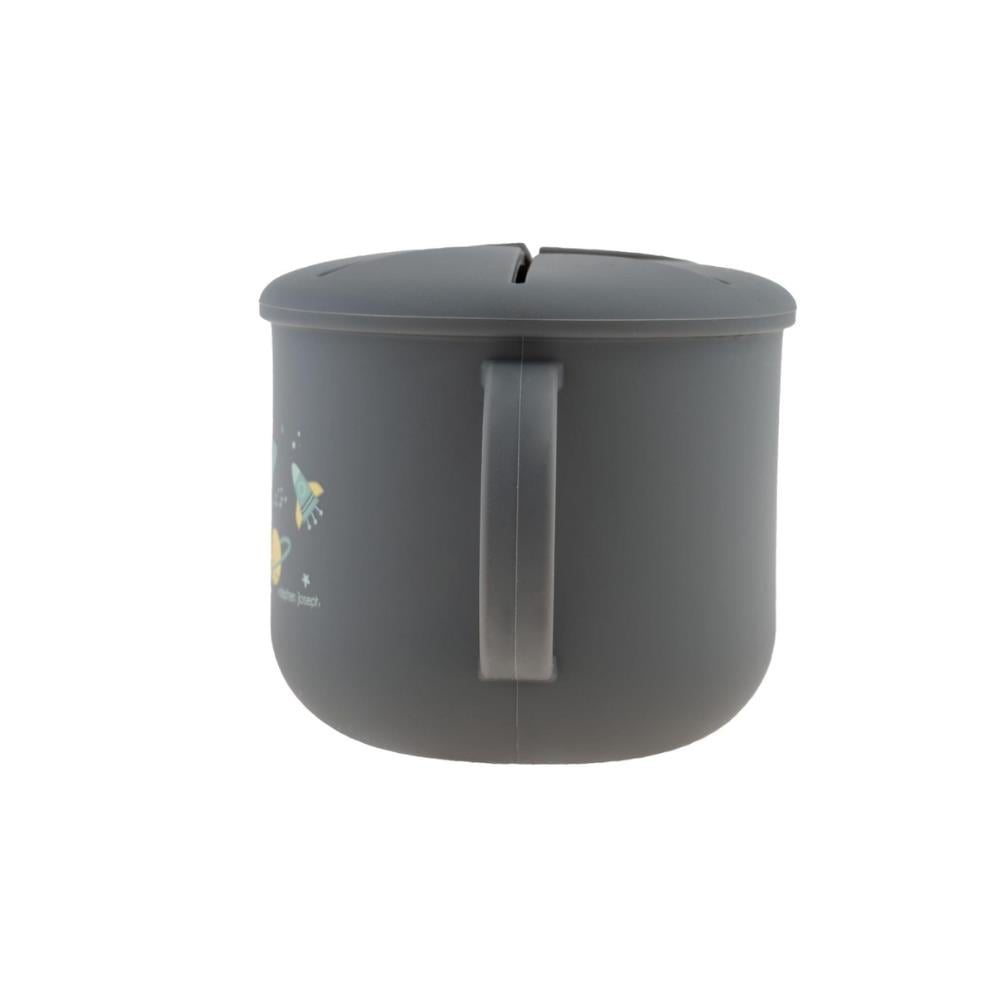 • Kapak, küçük ellerin rahatça erişebileceği esnek bir silikondan yapılmıştır ve aynı zamanda dökülmeleri önleyecek kadar alan yaratır.