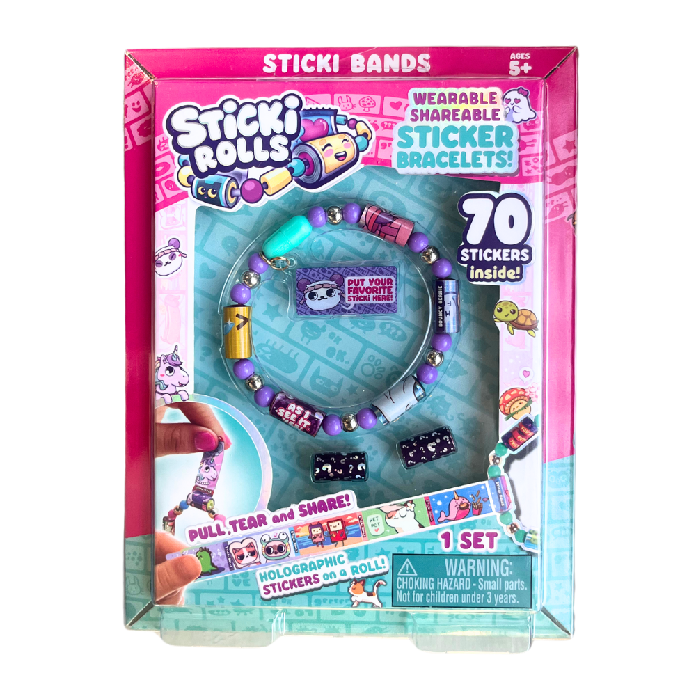 Bilekliğinizdeki her Sticki Roll, çekip koparabileceğiniz ve paylaşabileceğiniz 10 holografik mini çıkartmadan oluşan bir rulodur! Her pakette toplam 70 çıkartma bulunur ve her biri farklı sevimli, Kawaii karakterlere sahiptir!