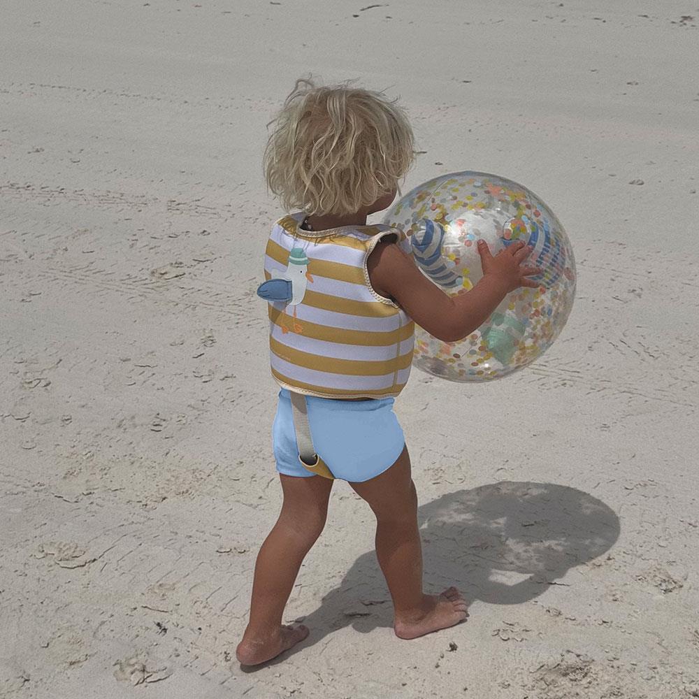 Dayanıklı neopren kumaştan yapılmıştır. Güvenli tutuş için cırt cırtlı orta ön fermuara sahiptir. Yüzme becerilerini geliştirirken aynı zamanda genç yüzücülerde güven oluşturur. Çocuklar bu ürünü kullanırken gözetim altında olmalıdır.