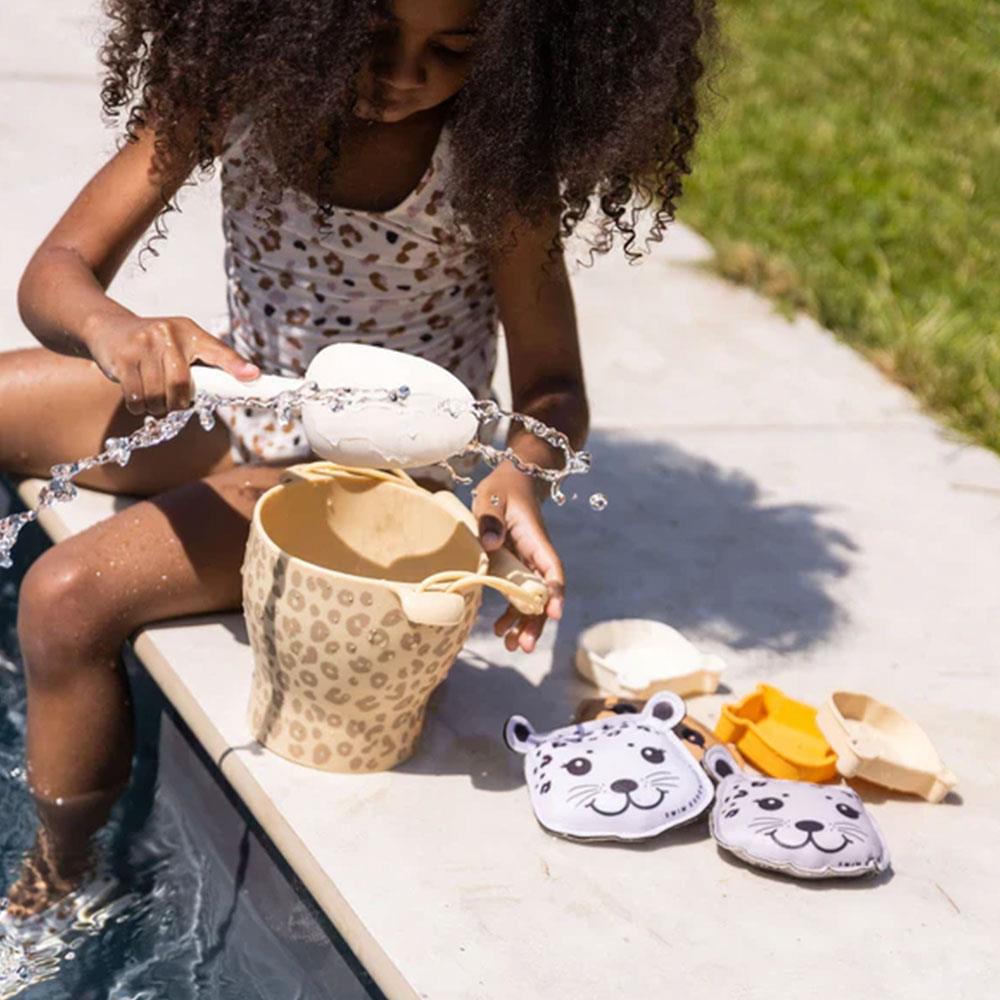 Plaj oyun seti bir kova, kürek ve 3 kalıp içerir Esnek silikon malzemeden üretilmiştir Suda kullanıma uygundur Plaj oyuncakları 12 x 9 cm ölçülerindedir