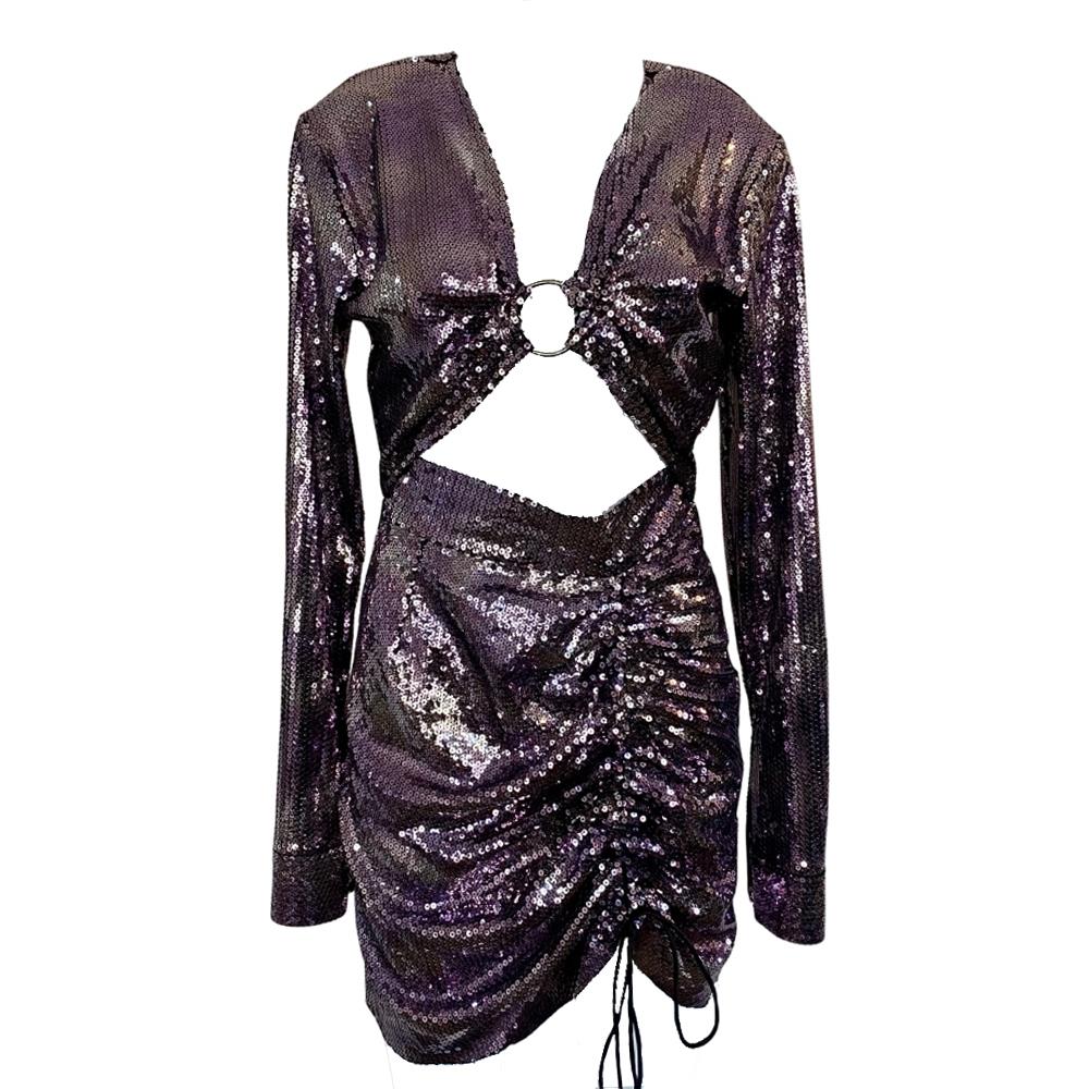 The New Arrivals Mor Payetli Büzgü Detaylı Mini Elbise - 36
