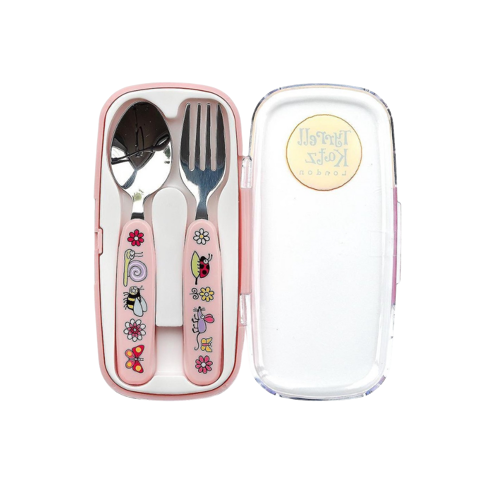 Renkli taşıma kutusu içinde çatal kaşık seti satışa sunulmuştur. Kolay kavranan sapları sayesinde küçükleri yemek yemeye teşvik eder.