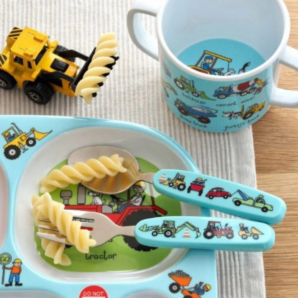 Renkli taşıma kutusu içinde çatal kaşık seti satışa sunulmuştur. Kolay kavranan sapları sayesinde küçükleri yemek yemeye teşvik eder.