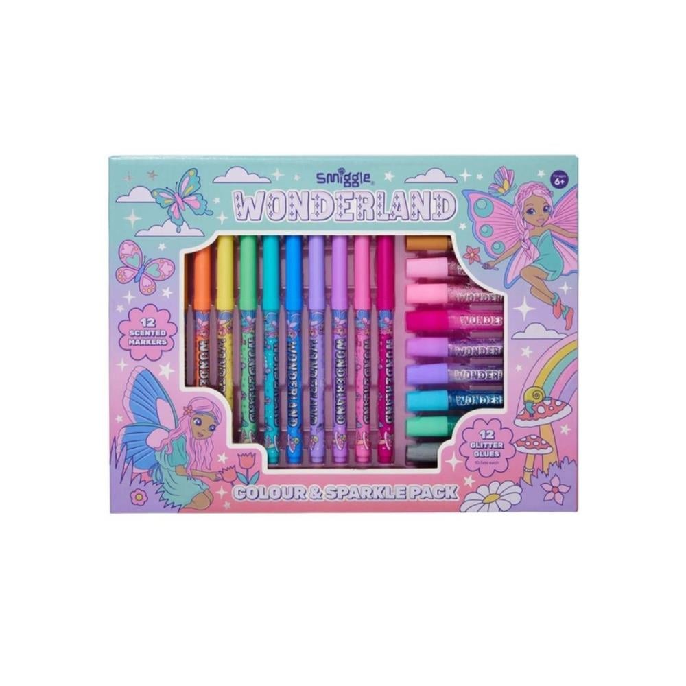 Smiggle Wonderland Colour Sparkle Seti, çocukların hayal gücünü parıltılı renklere dönüştürmesi için tasarlandı. Pembe renkli bu özel set, boyama aktivitelerini daha eğlenceli hale getiren simli kalemler, canlı renkli boyalar ve yaratıcı içeriklerle dolu. Okulda, evde veya tatilde kullanılabilecek taşınabilir sanat paketi!