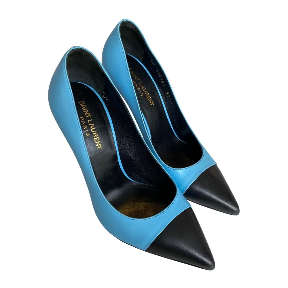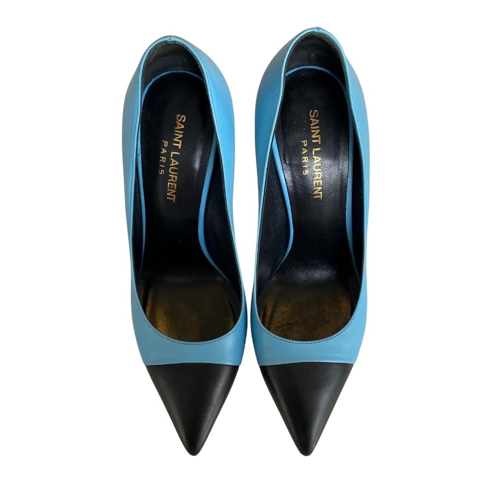 Yves Saint Laurent Deri Mavi/Siyah Topuklu Ayakkabı - 37